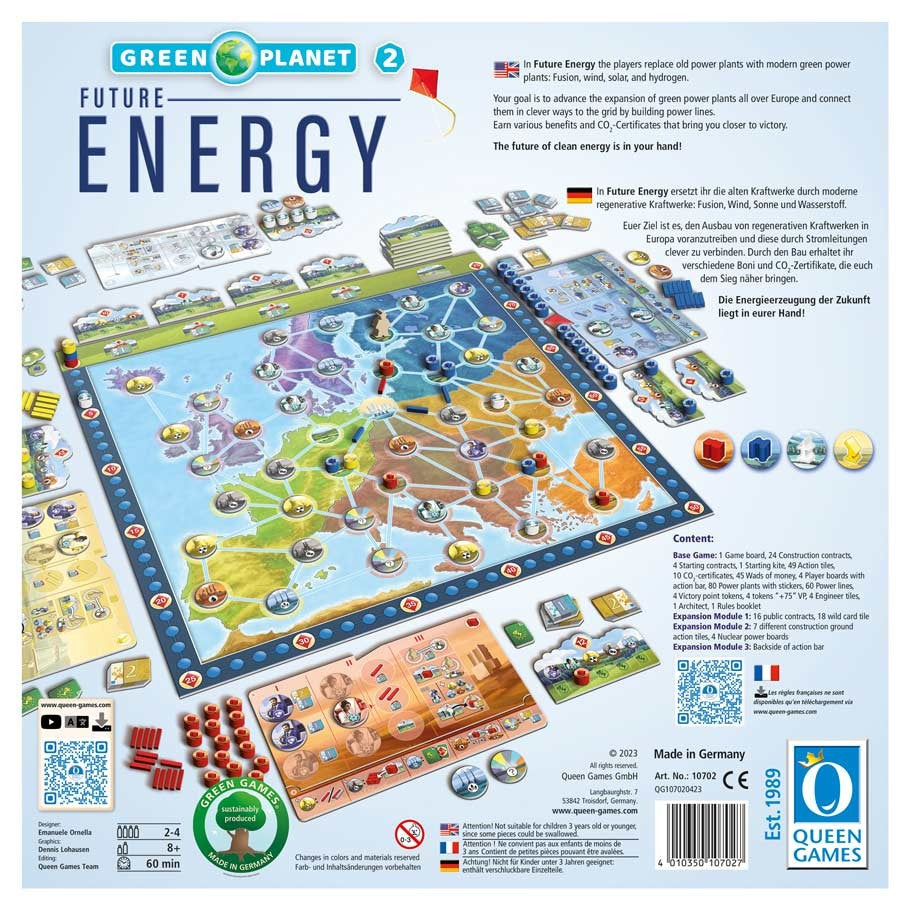 In Future Energy the players replace old power plants with modern green power plants: Fusion, wind, solar, and hydrogen.