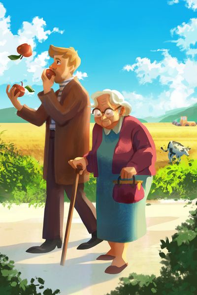 Gameplay: One player (Child) must "mime" memories depicted on the cards by using objects in the hand of another player (Grandfather), whose eyes are shut.