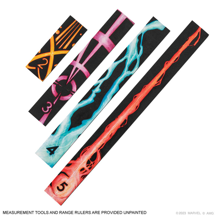This pack contains three joined movement tools and four range tools to supplement your games of Marvel: Crisis Protocol with an additional set of the movement and range tools found in the Marvel: Crisis Protocol Core Set.