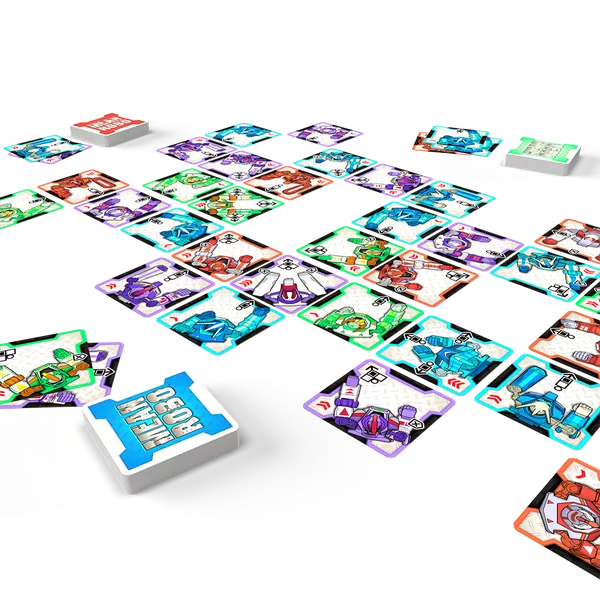 Mean Robo is a competitive strategy card game for 2 to 4 players. In a round, players take turns placing Robos on the game area to target the other player’s team. Card placement determines who will blow up in the attack phase. Collect any Robos you blow up, and the player with the most points wins!