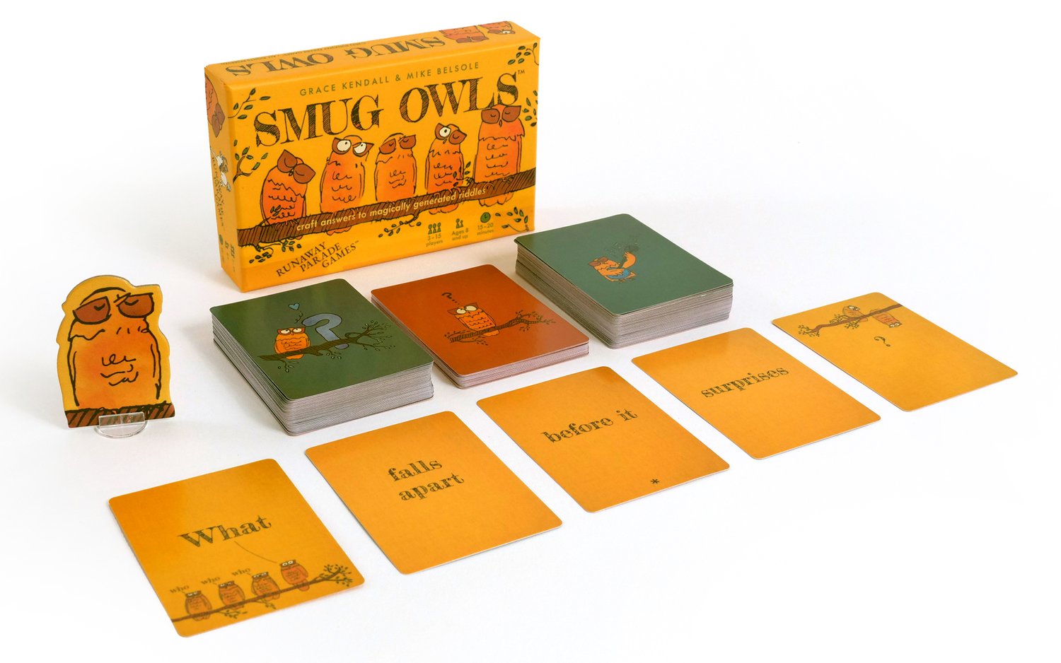Got an answer? Slap your hand on the table once you’re ready. When only one player is left, they become theSmug Owl, who listens to all the answers and rewards their favorite.
