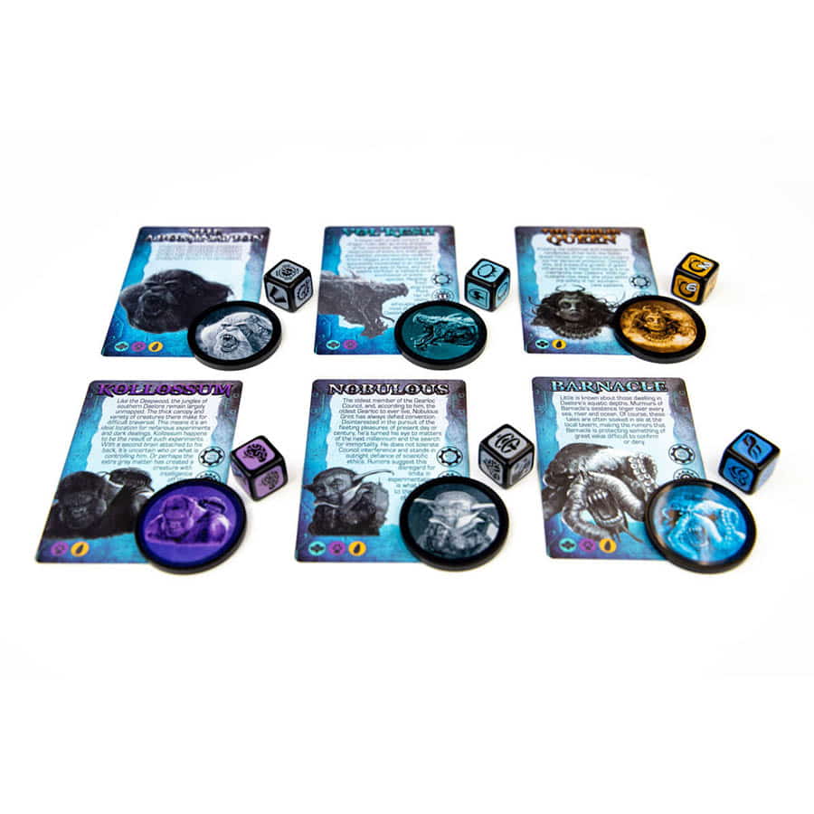 Undertow is playable for 1-2 players out of the box or 3-4 players by adding additional Gearloc characters via Add-ons or from the original Too Many Bones. Encounters, Baddies, Tyrants, and Gearlocs from Too Many Bones and 40 Days in Daelore are fully compatible with Undertow.