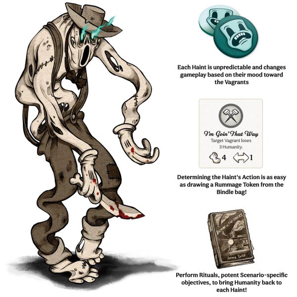 In Vagrantsong, a cooperative and story-driven boss battler, you will take on the role of a Vagrant trapped on a supernatural ghost train. Face off against ghosts lingering on the train (called Haints), adjust your playstyle with Skills and Junk acquired along the way, and uncover the secrets of the Silver Ferryman in this spooky and challenging adventure.